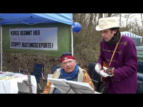 Schöne Aktion: Stoppt Rüstungsexporte des Mercedes-Benz-Werkes - erstmalig vor den Toren des LKW-Werkes in Wörth